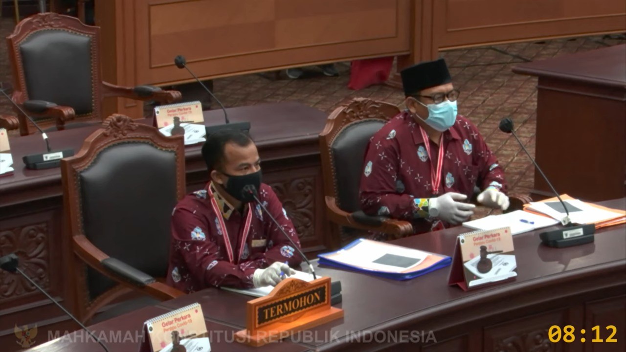 Teman pemilih, Pada hari ini Rabu 19 Mei 2021 Pukul 08.00 WIB, Persidangan Pokok Perkara PHP Bupati Rokan Hulu Tahun 2020 Nomor 140/PHP.BUP-XIX/2021 digelar di Ruang Utama sidang Lt.2 gedung 1 Mahkamah konstitusi Republik Indonesi, Perkara yang Pemohonnya Pasangan Calon Bupati dan Wakil Buapati Rokan Hulu Nomor Urut 3 Ir. H.Hafith Syukri, MM & H. Erizal, ST, Termohon KPU Kabupaten Rokan Hulu ini digelar dengan agenda Pemeriksaan Pendahuluan. Sidang dipimpin oleh Ketua Majelis Prof. Aswanto, Dr. Suhartoyo dan Dr. Daniel Yusmic P Foekh, Pihak Pemohon diwakili oleh Teja Sukmana sebagai Kuasa Hukum, Pihak Termohon Azhar Hasibuan, SH dan Cepi Abdul Husen, S.Pd., MM., yang hadir langsung di ruang sidang sebagai prinsipal didampingi Anggota KPU Provinsi Riau Firdaus, SH dan Anggota KPU Republik Indonesia I Dewa Kade Wiarsa Raka Sandi. Hadir sebagai Pihak Pemberi Keterangan Ketua dan Anggota Bawaslu Rokan Hulu didampingi Anggota Bawaslu Riau dan Anggota Bawaslu RI secara Luring dan daring.