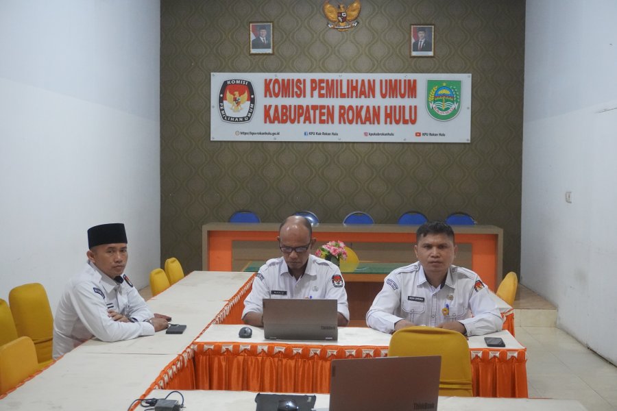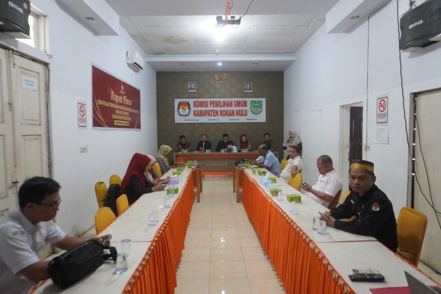 Pasir Pengaraian, 2 Juli 2025 - Komisi Pemilihan Umum (KPU) Kabupaten Rokan Hulu menggelar Rapat Pleno Rekapitulasi Pemutakhiran Data Pemilih Berkelanjutan (PDPB) Triwulan II Tahun 2025. Pleno ini dihadiri oleh Ketua dan Anggota KPU Kabupaten Rokan Hulu, Sekretaris, Kasubbag beserta Staf KPU Kabupaten Rokan Hulu dan berbagai stakeholder, antara lain Anggota Badan Pengawas Pemilu Kabupaten Rokan Hulu beserta Staf, Perwakilan Dinas Kependudukan dan Pencatatan Sipil Kabupaten Rokan Hulu, beserta LO Partai Politik di Kabupaten Rokan Hulu.