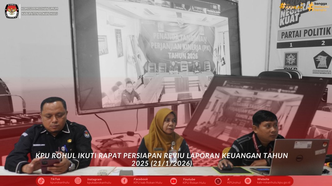 KPU Rohul melaksanakan Kegiatan Penandatanganan Kinerja pada 20 Januari 2026. Hadir Ketua dan Seluruh Anggota KPU Rokan Hulu dan Sekretaris.