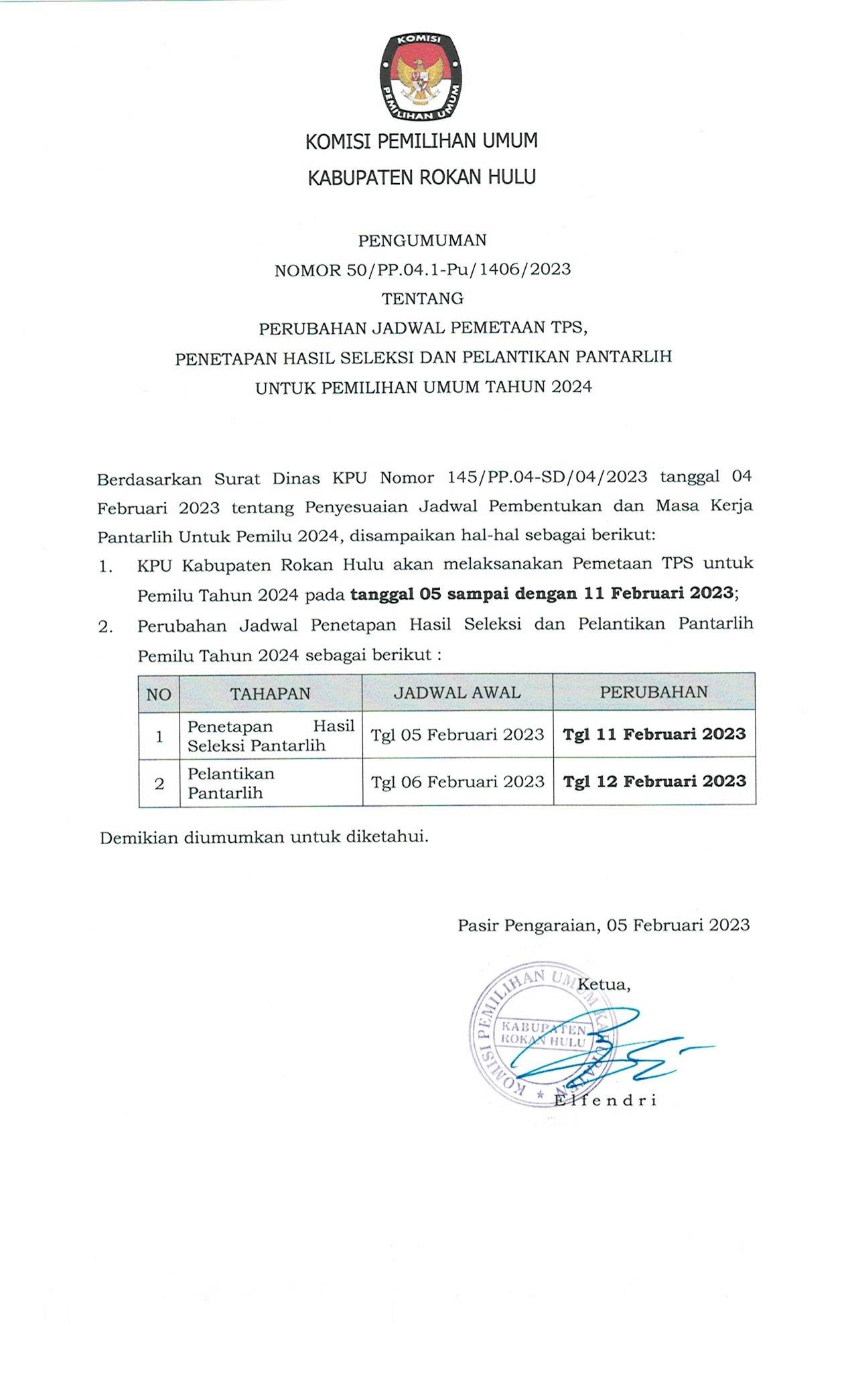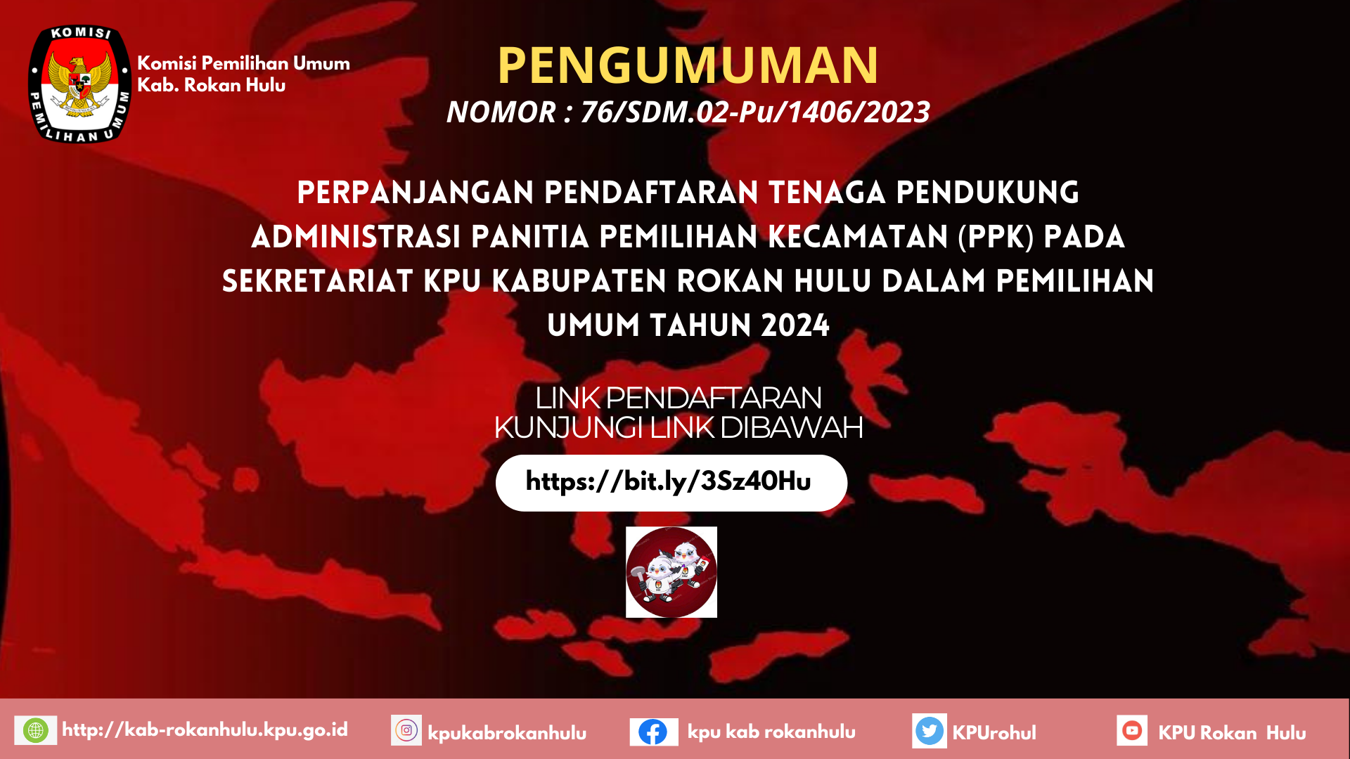 Perpanjangan Pendaftaran Tenaga Pendukung Administrasi Sekretariat Panitia Pemilihan Kecamatan (PPK) KPU Rokan Hulu 2023